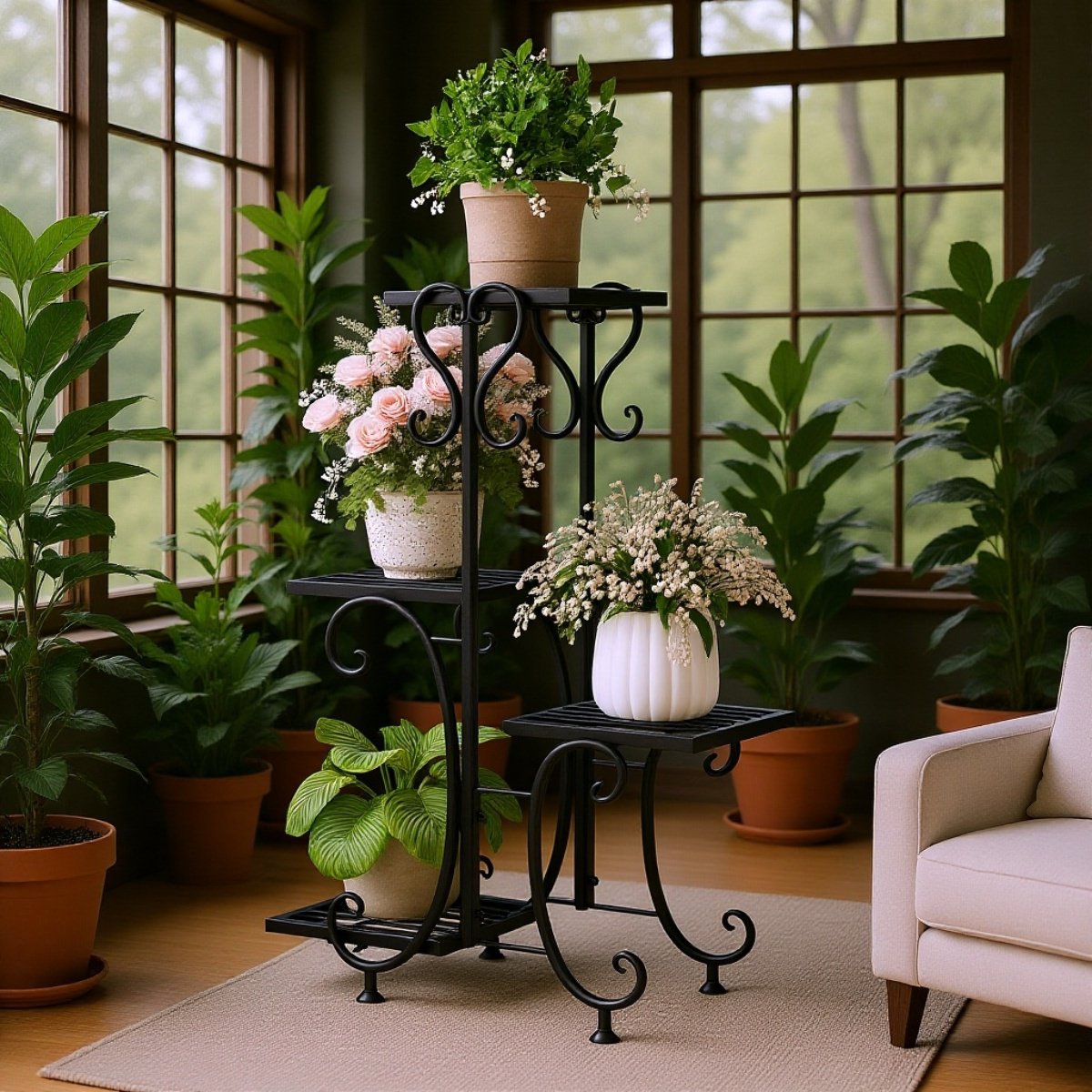 ● 錬鉄製の丈夫な構造で、9段のフラワーポットラックは多くの植物や小物を美しく収納できます。